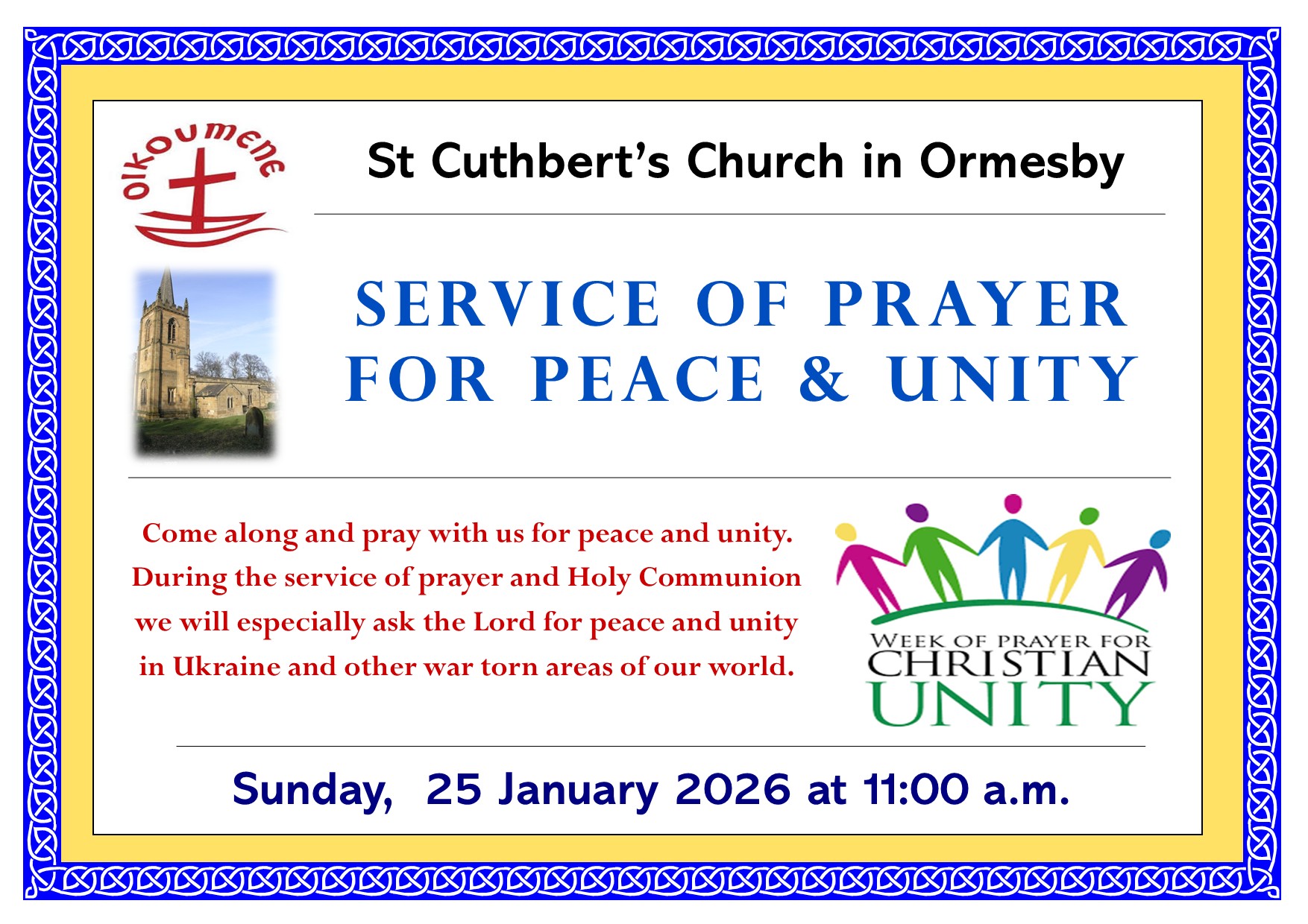 Instead of the usual Celtic Communion Service, there will be a special service on Sunday, 25th January 2026. The service is at 11 am, not the usual 10 am start for Sunday services, and will include Holy Communion. This is part of our observation of the Week of Prayer for Christian Unity, 18th to 25th January 2026.